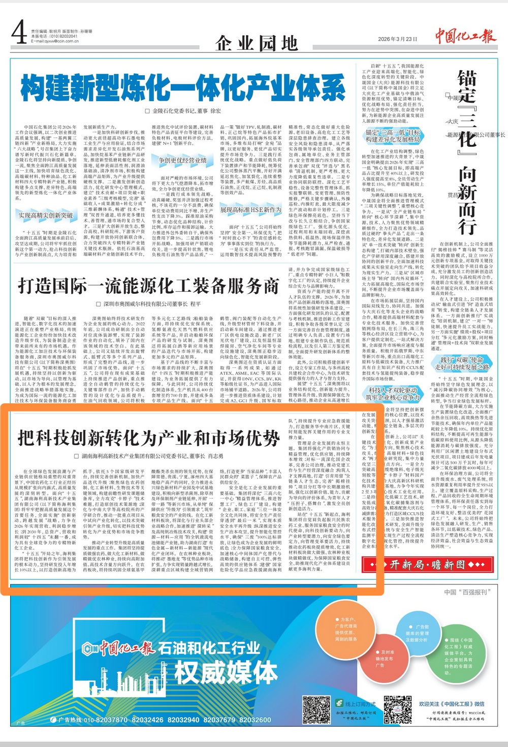 《中国化工报》刊发肖志勇同志署名文章:把科技创新转化为产业和市场优势